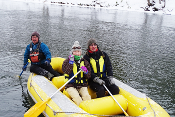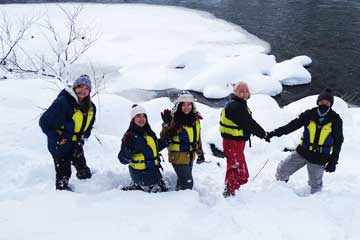 小さなお子様からワンちゃんまでご家族みんなで楽しめるゆったりのんびりな川下りです。あまり濡れないので安心です。スキーウェアなどの防寒着をしっかり着込んで、雪の上を歩けるスノーブーツがあれば寒さも雪もへっちゃら!真っ白な羊蹄山を眺めながら、神秘的な冬の世界を楽しみましょう。